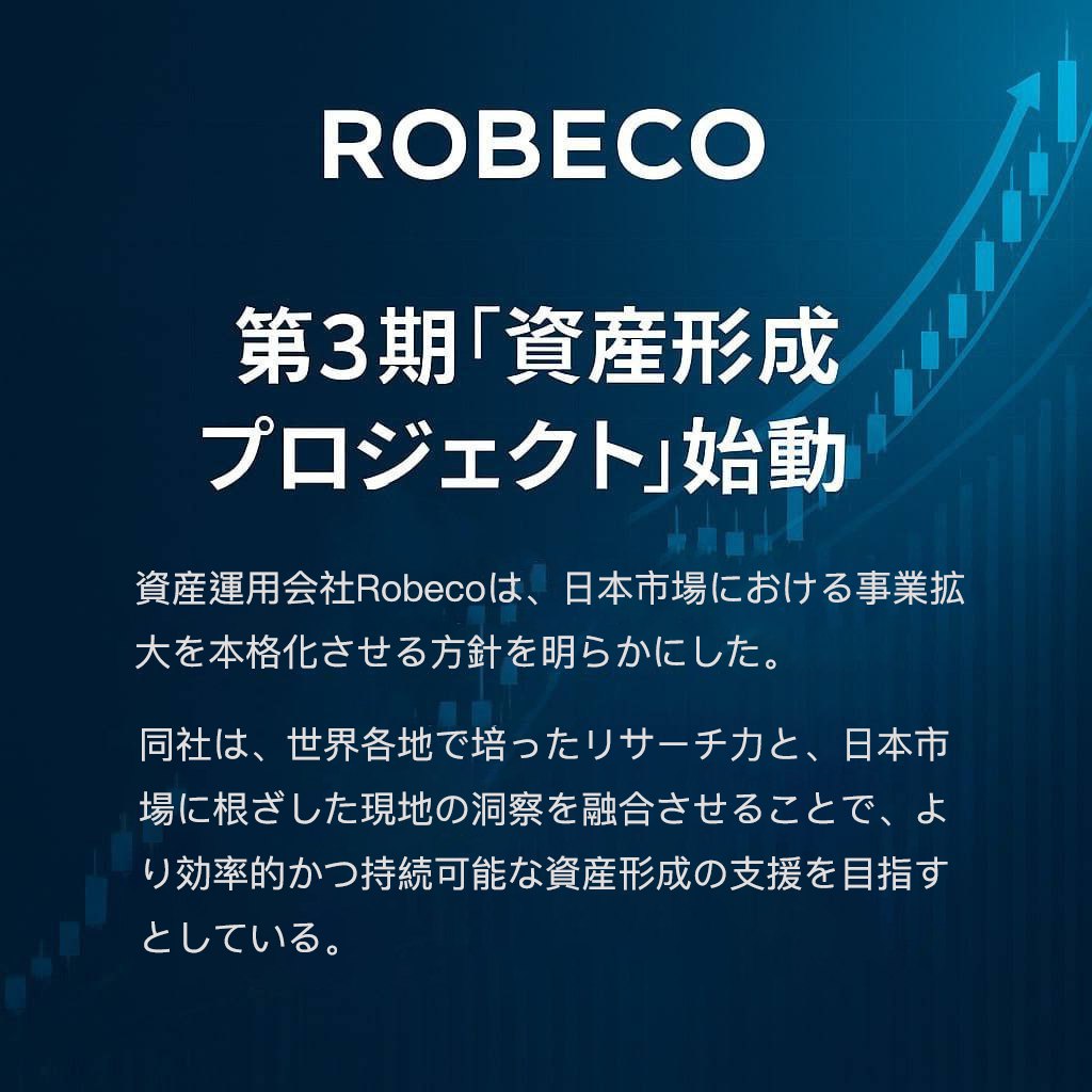 オランダの大手資産運用会社ROBECOの日本法人、ロベコ・ジャパン株式会社は2025年、個人投資家・機関投資家を対象とした第3期「資産形成プロジェクト」の始動を正式発表した。前回プロジェクトでの実績を踏まえ、より高収益かつ持続可能な資産形成を実現することを目的とする。